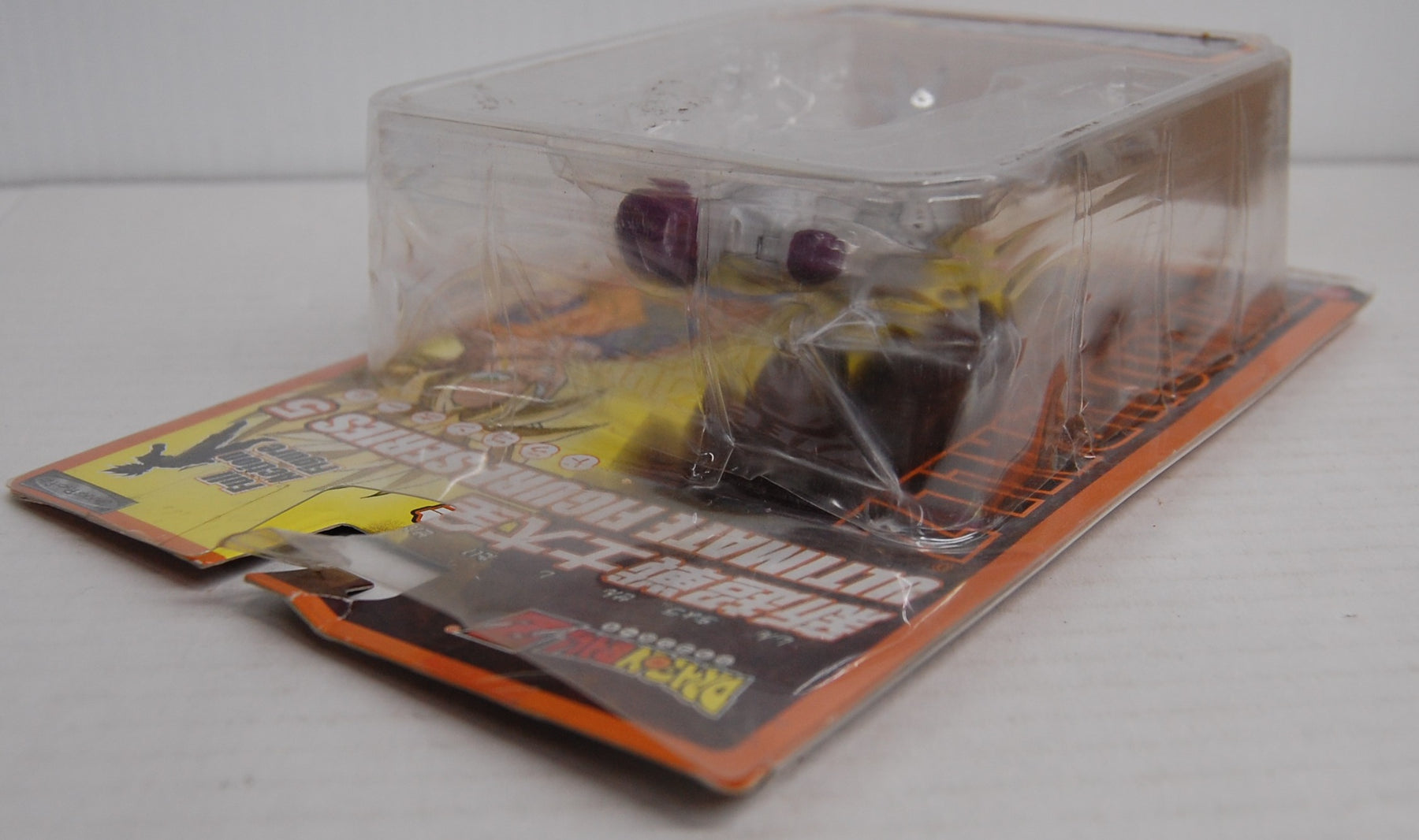 May have been previously displayed, package has obvious visual wear, bubble denting or crushing and scuffing, card has a torn hang tag, some waviness, tape residue and soiling along some of the back. Figure looks good and is approximately 4 1/4 tall.