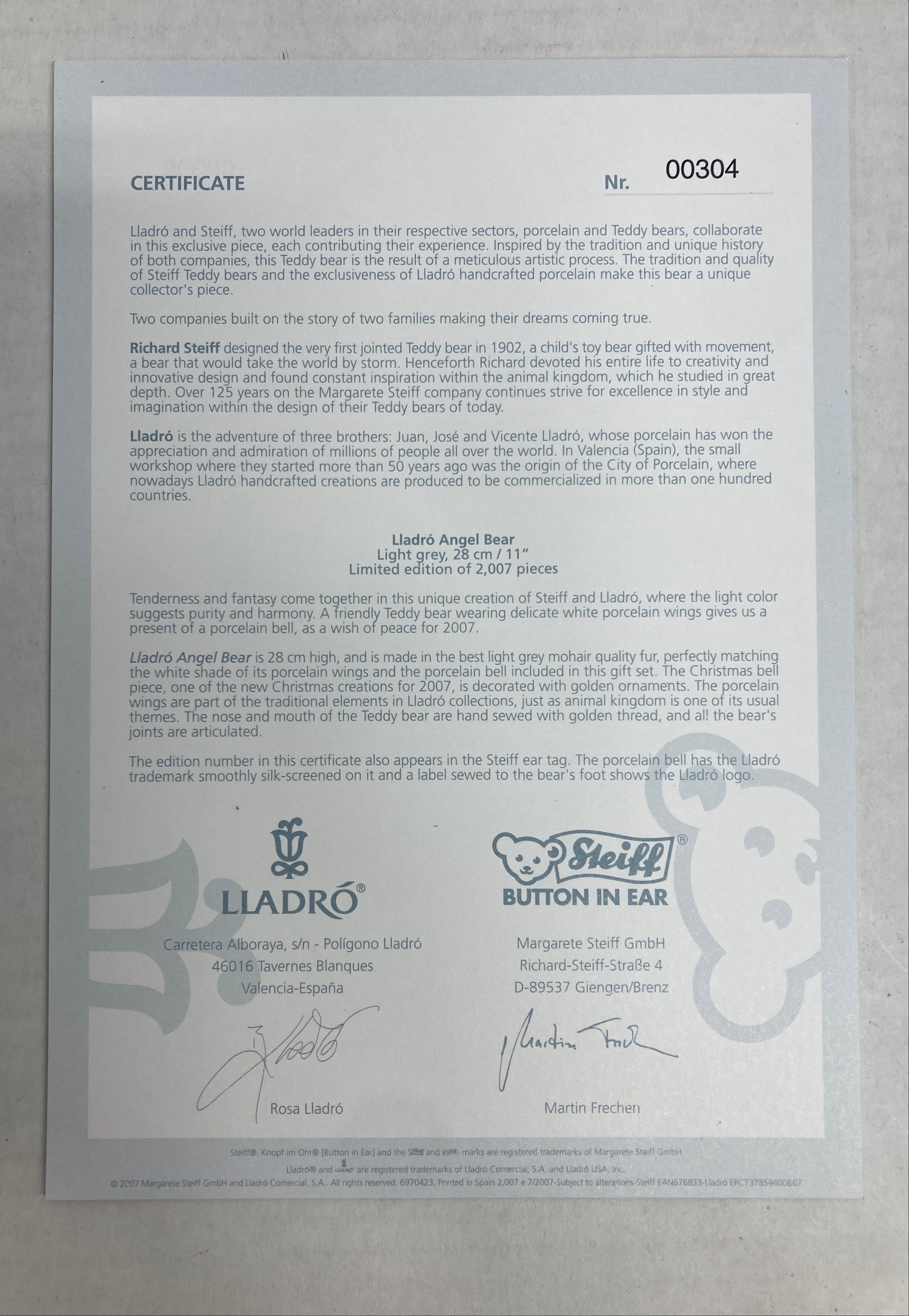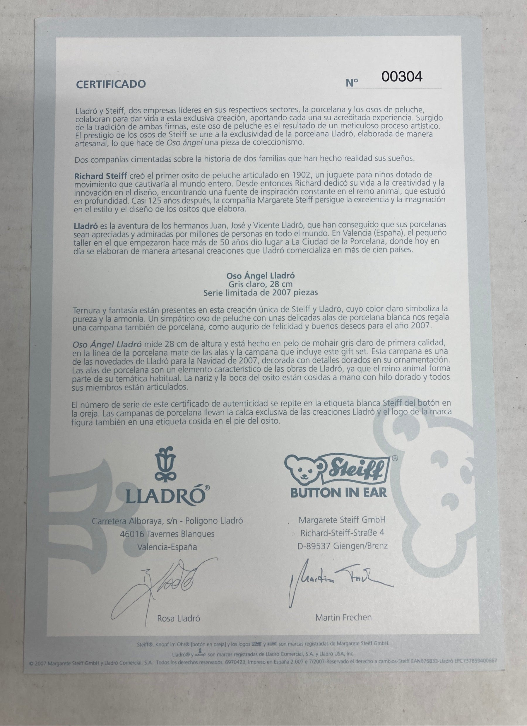 Steiff Lladro Angel Teddy Bear & Bell Ornament 676833 #304 of 2007. This bear is in great condition and is very cute. Comes with authenticity paperwork. Examine our photos thoroughly before making your offer or purchase. We are happy to answer any questions you have.