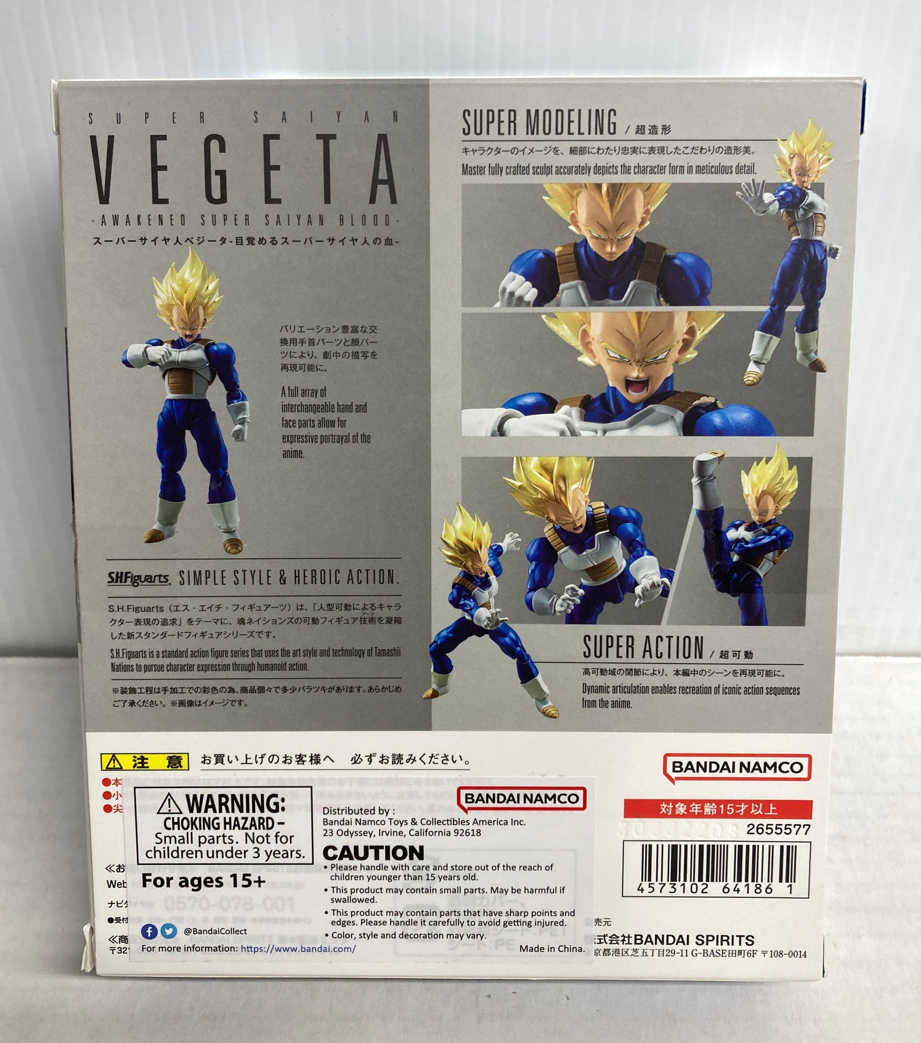 Dragon Ball Vegeta Awakened Super Saiyan Blood S.H.Figuarts - Open Box. This item is open. The figure is in great condition and comes only with the pictured accessories. Examine our photos thoroughly before making your offer or purchase.