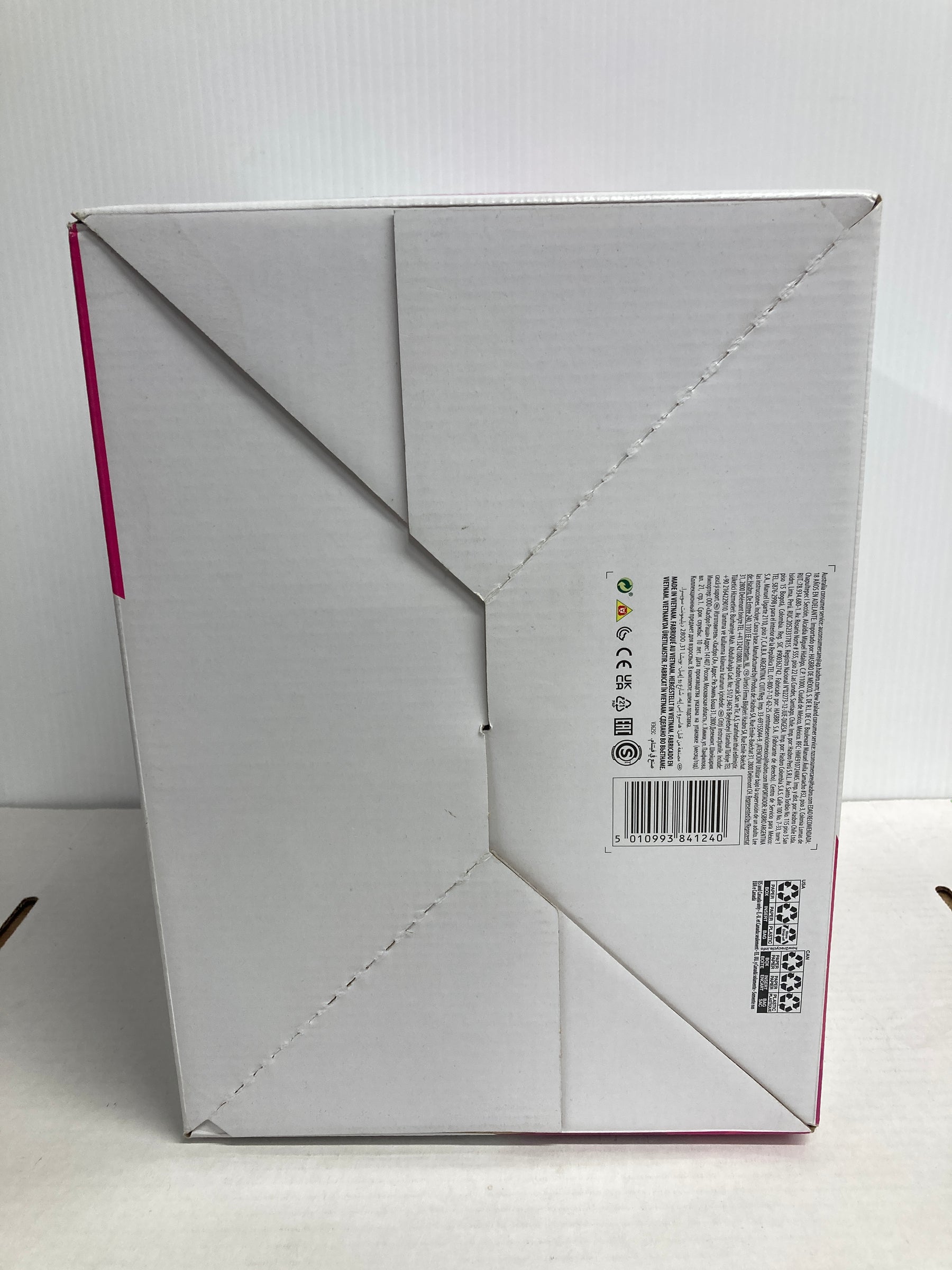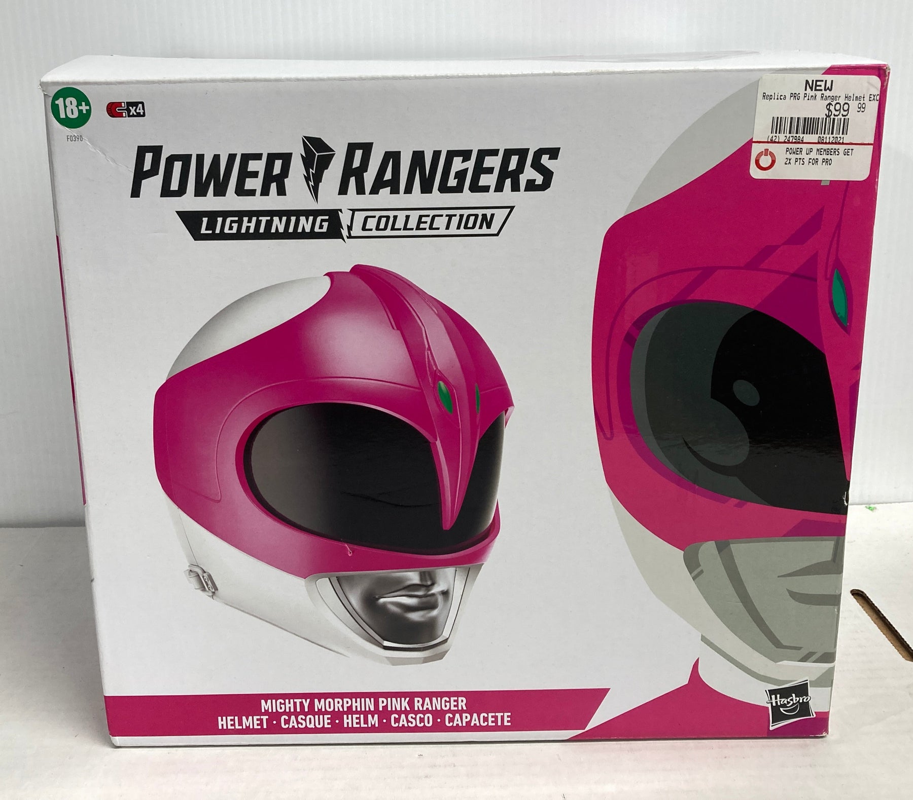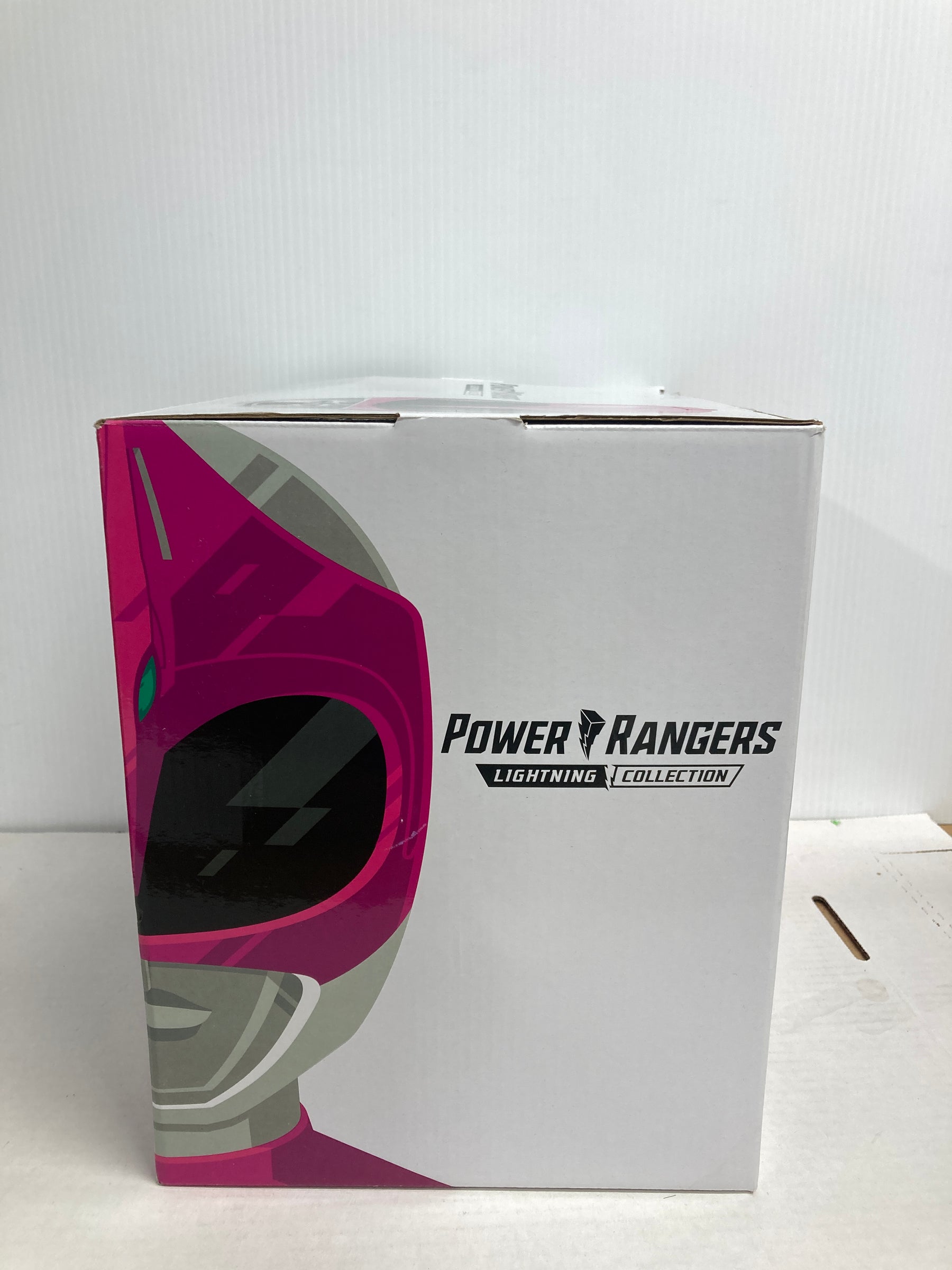 Power Rangers Lightning Collection Pink Ranger Helmet - Open. Box is not sealed. The box and the helmet have light blemishes. The helmet displays very well. This does not look like it will fit on very big heads so buy at your own risk. Examine our photos thoroughly before making your offer or purchase. We are happy to answer any questions you may have.