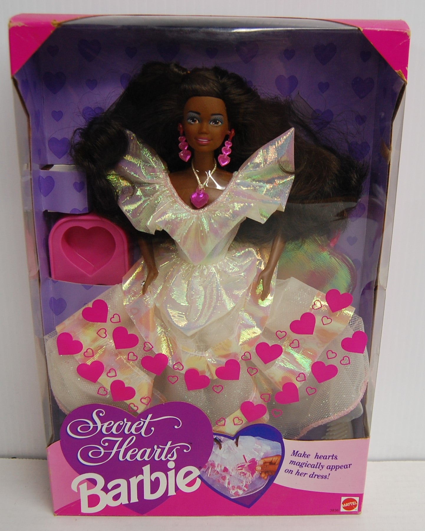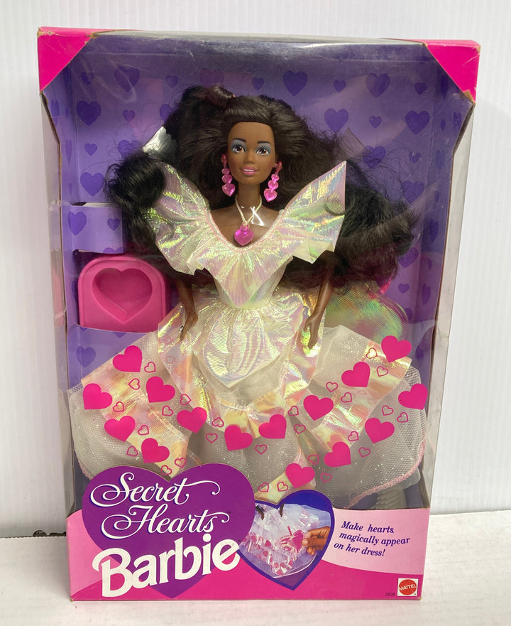 Barbie Secret Hearts African American Doll 1992 #3836. Box has visible signs of shelf-wear. Comes only with the pictured accessories. Examine our photos before offer or purchase. We are happy to answer your questions.