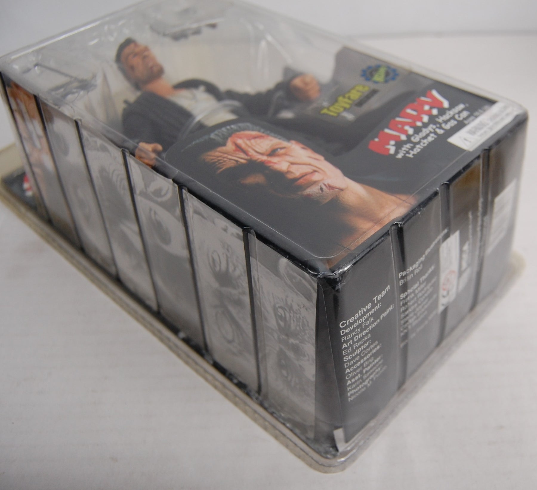 Still sealed but has a couple corner blunts and minor cracking, slight discoloration. Figure looks great.