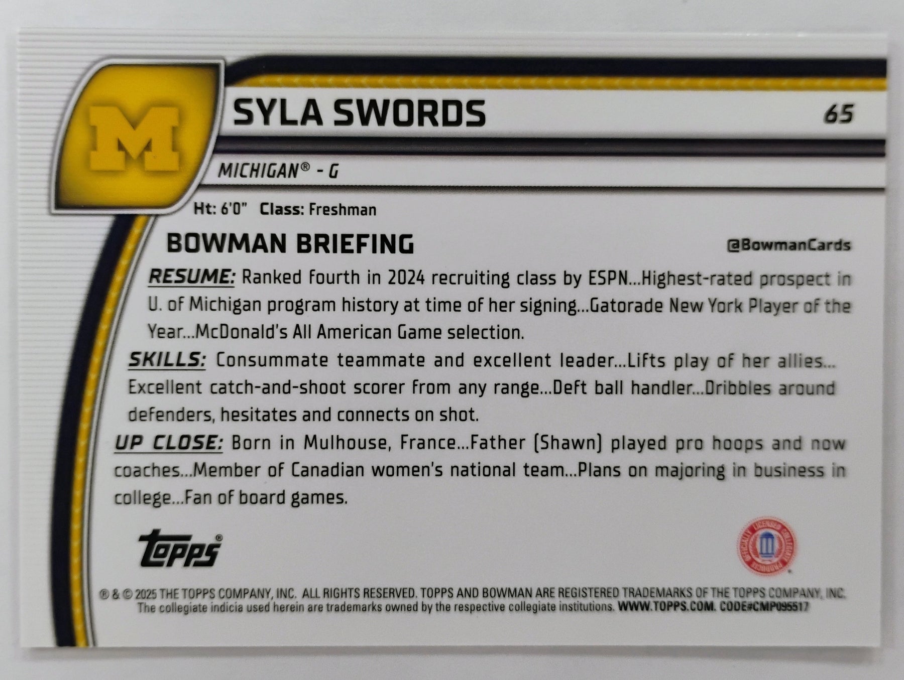 2025 Bowman Chrome U Syla Swords #65 Purple Lave