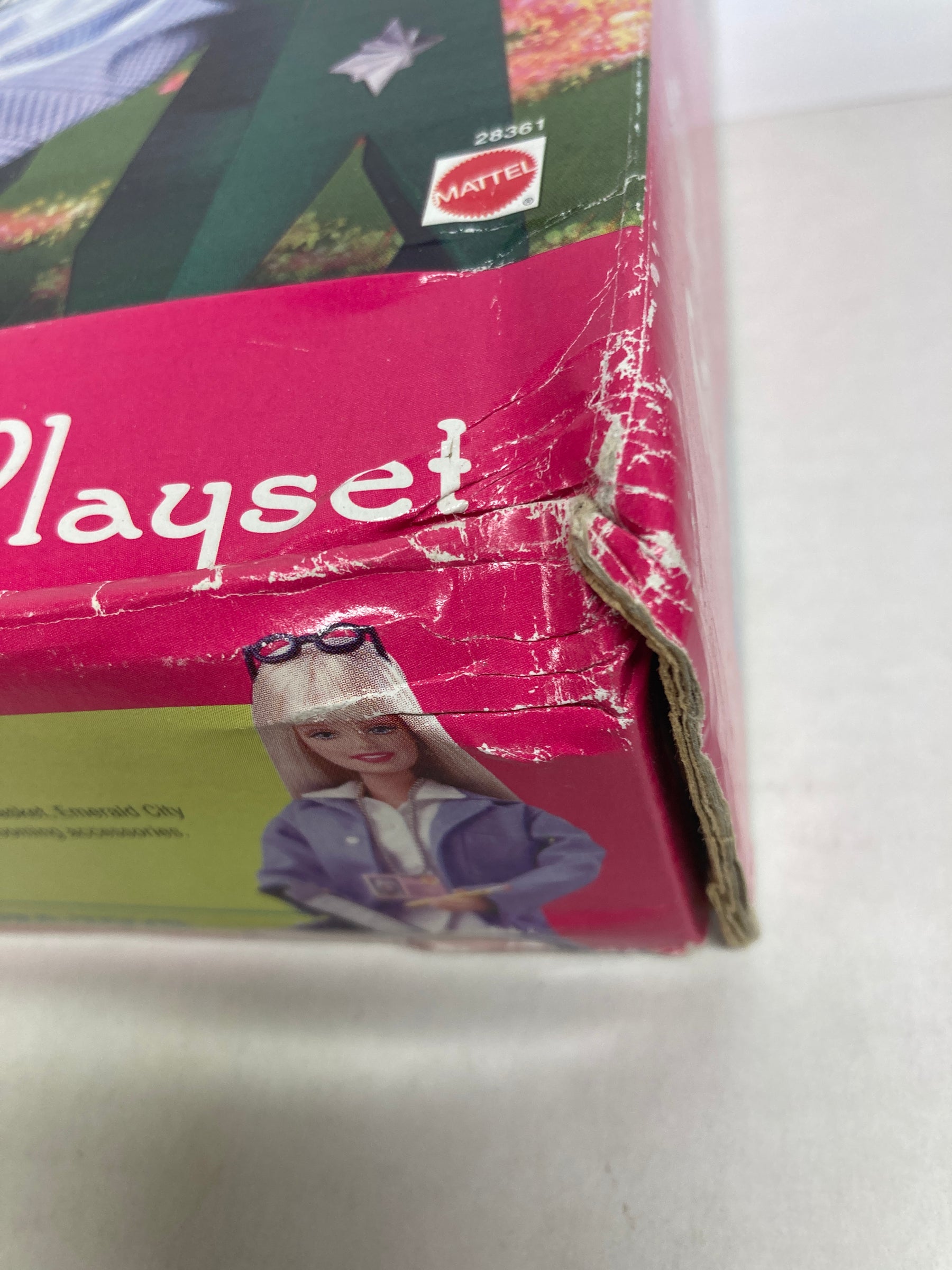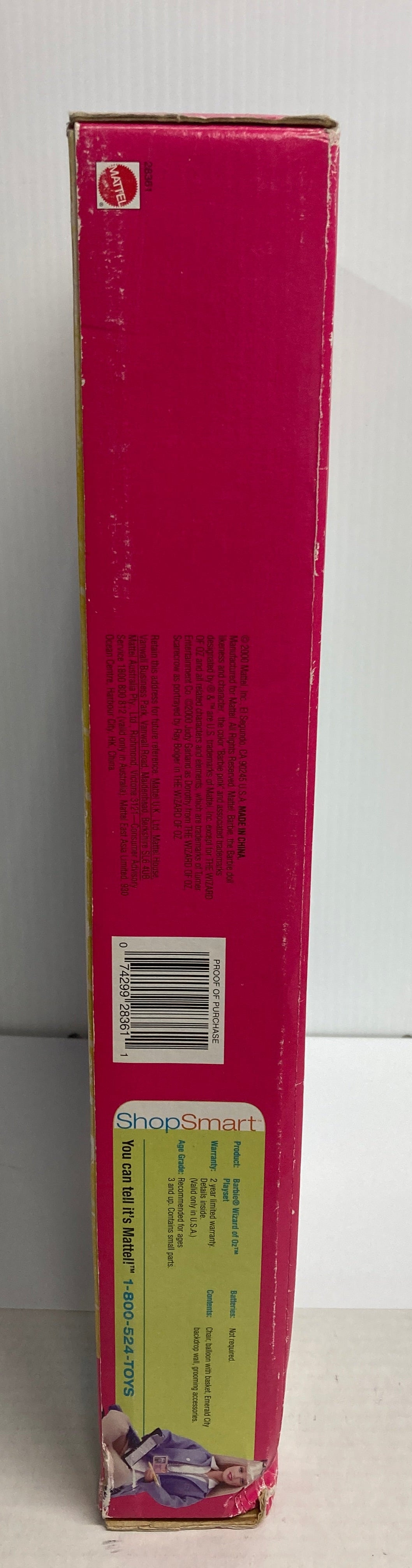 Barbie Wizard of Oz Playset - Emerald City Omaha State Fair - 2000. The box is SEALED and has never been opened. The box has some visible blemishes. Some of the items inside the box have fallen free from the plastic window and can be heard moving around in the box. Examine our photos thoroughly before making your offer or purchase. We are happy to answer your questions.
