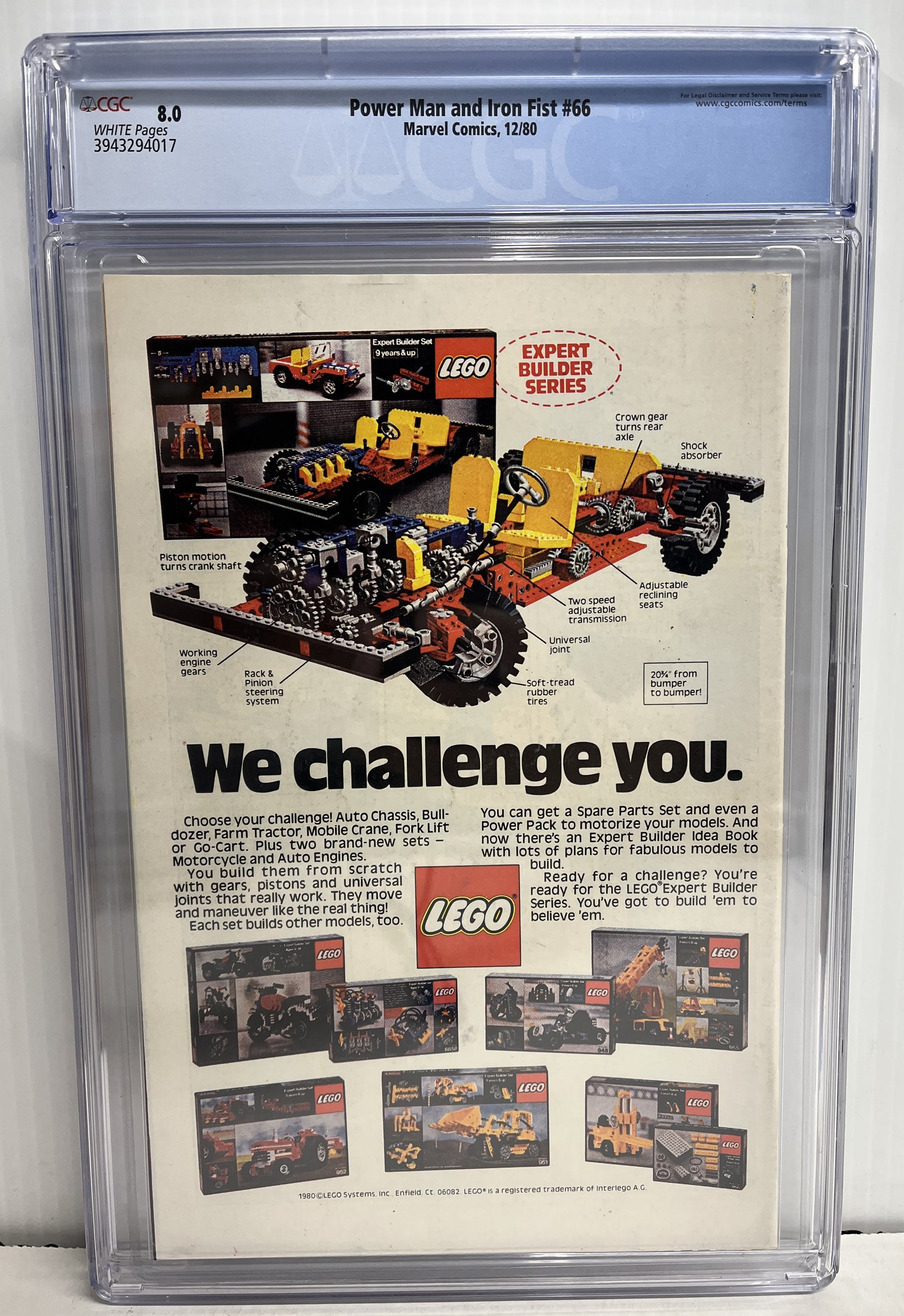 CGC Cert # 3943294017 Title Power Man and Iron Fist Issue 66 Issue Date 12/80 Issue Year 1980 Publisher Marvel Comics Grade 8.0 Page Quality WHITE Grade Date 2022-02-03 Label Category Universal Art Comments Mary Jo Duffy story Kerry Gammill & Ricardo Villamonte art Frank Miller cover Key Comments 2nd appearance of Sabretooth. Constrictor appearance. Grader Notes writing indent right top of front cover multiple crease front cover foreign substance right center of front cover Total Graded by CGC In 8.0: 43 In Higher Grades: 534