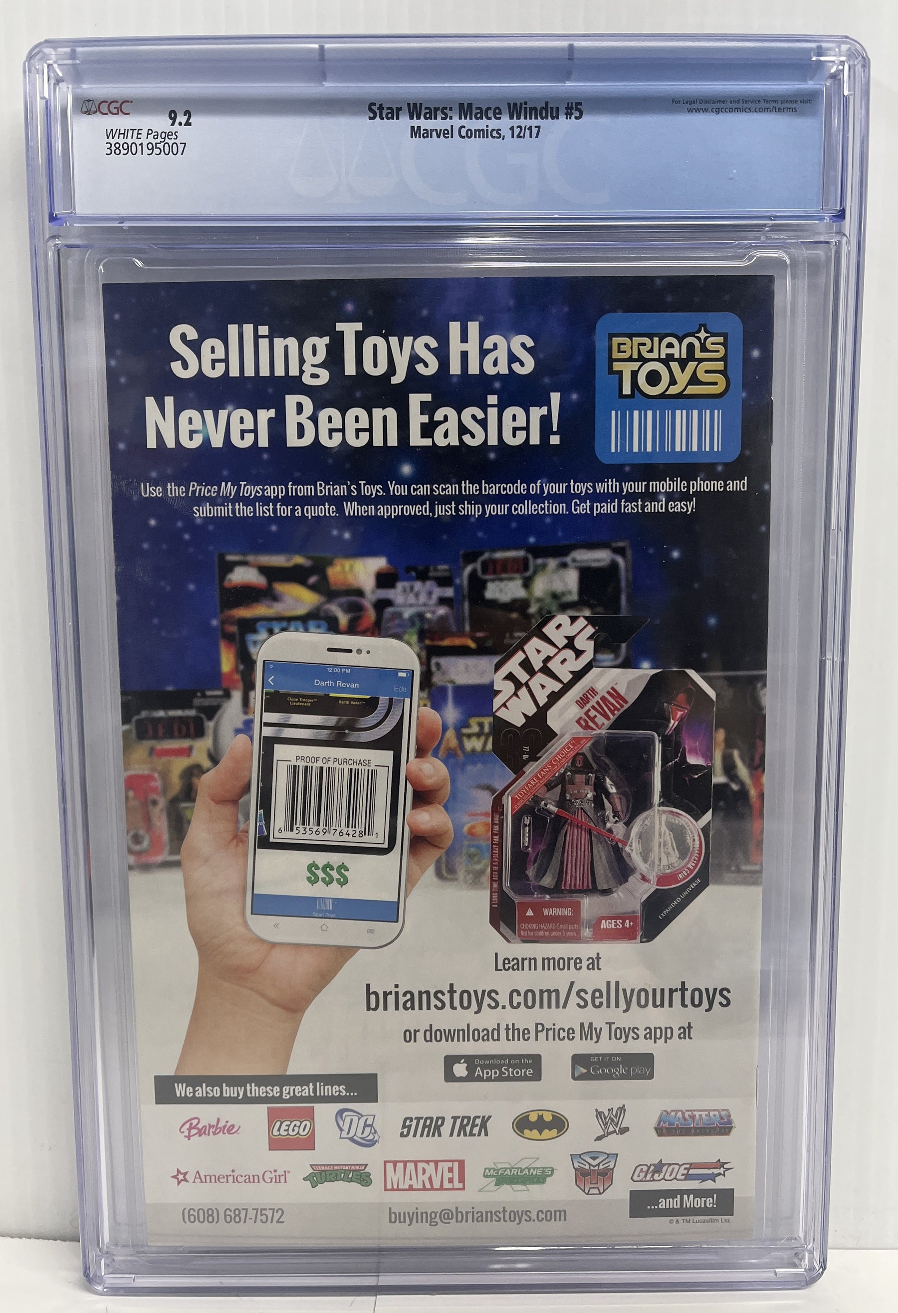 CGC Cert # 3890195007 Title Star Wars: Mace Windu Issue 5 Issue Date 12/17 Issue Year 2017 Publisher Marvel Comics Grade 9.2 Page Quality WHITE Grade Date 2021-11-19 Label Category Universal Art Comments Matt Owens story Denys Cowen & Roberto Poggi art Rod Reis cover Grader Notes fingerprints left top of back cover breaks color