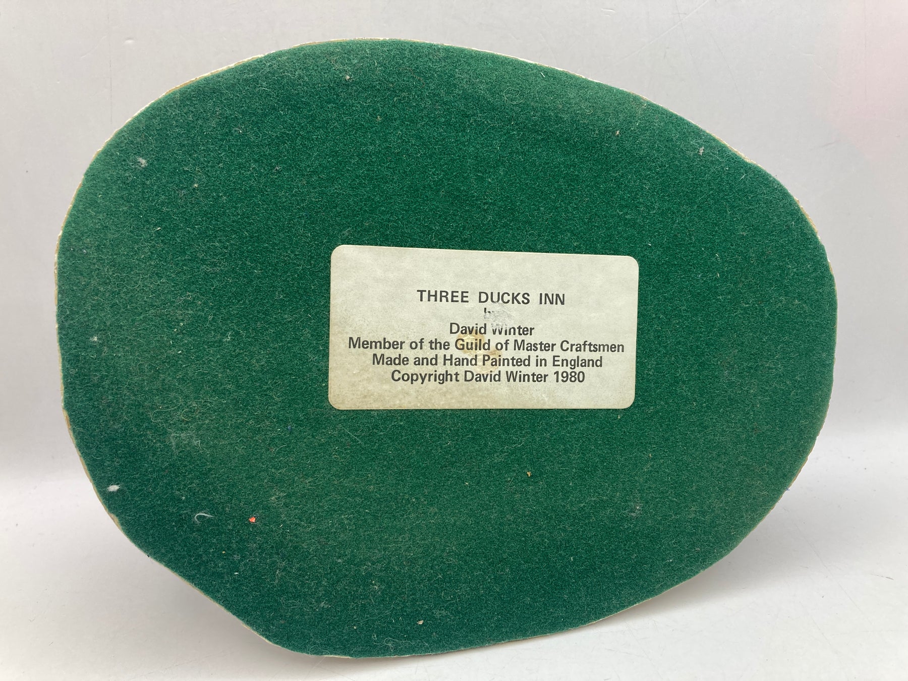 David Winter Three Ducks Inn Sculpture 1980. David Winter was a member of the Guild of Master Craftsmen. This piece was made and hand-painted in England, and issued in 1980. It does have some light scuffs and chips, as pictured. Examine our photos closely before making your offer or purchase.