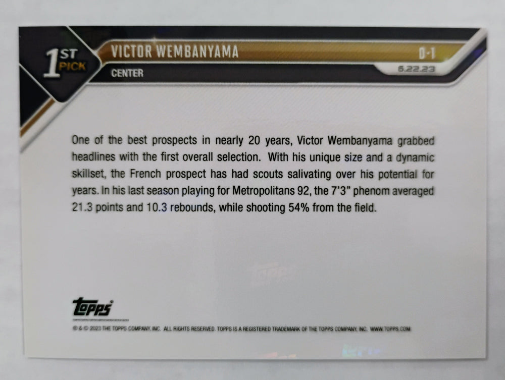 2023 Topps Now Basketball Victor Wembanyama #D-1 RC Draft Night 1st Pick