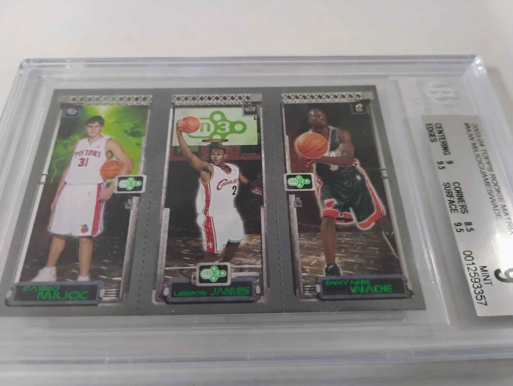 2003-04 Topps Basketball Rookie Matrix Milicic/James/Wade #MJW Beckett Mint 9