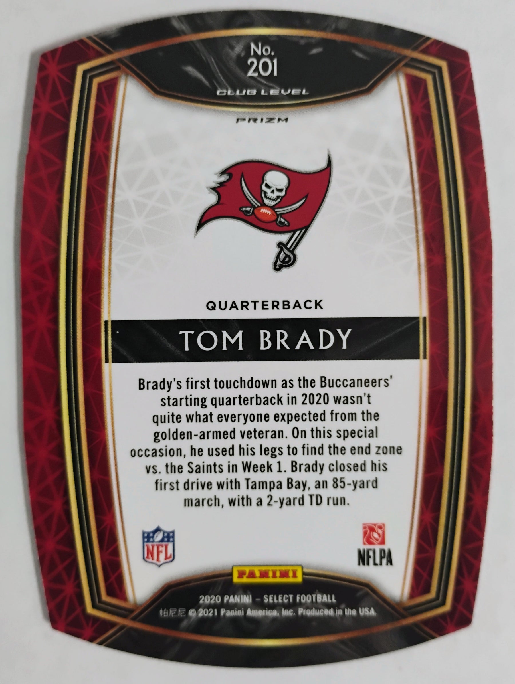 2020 Select Football Tom Brady #201 Club Level Light Blue Prizm Die Cut EX-Mint Ungraded