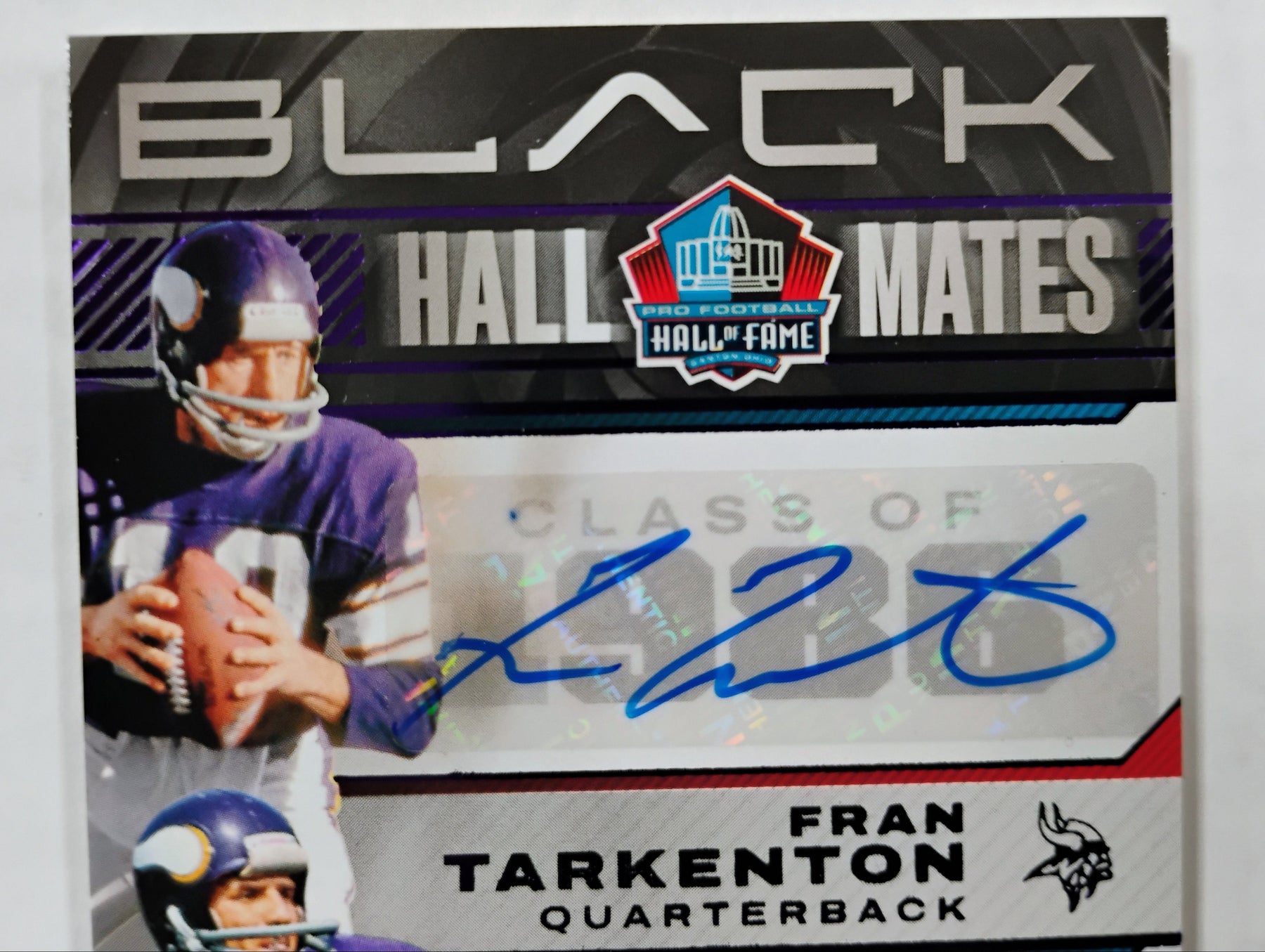 2024 Panini Black Football Hall Of Fame Mates Fran Tarkenton/Paul Krause Auto #'D 19/25 NM-Mint No Creases Light Chipping Botton Back Corners Clean Autographs Very Nice Card!!!