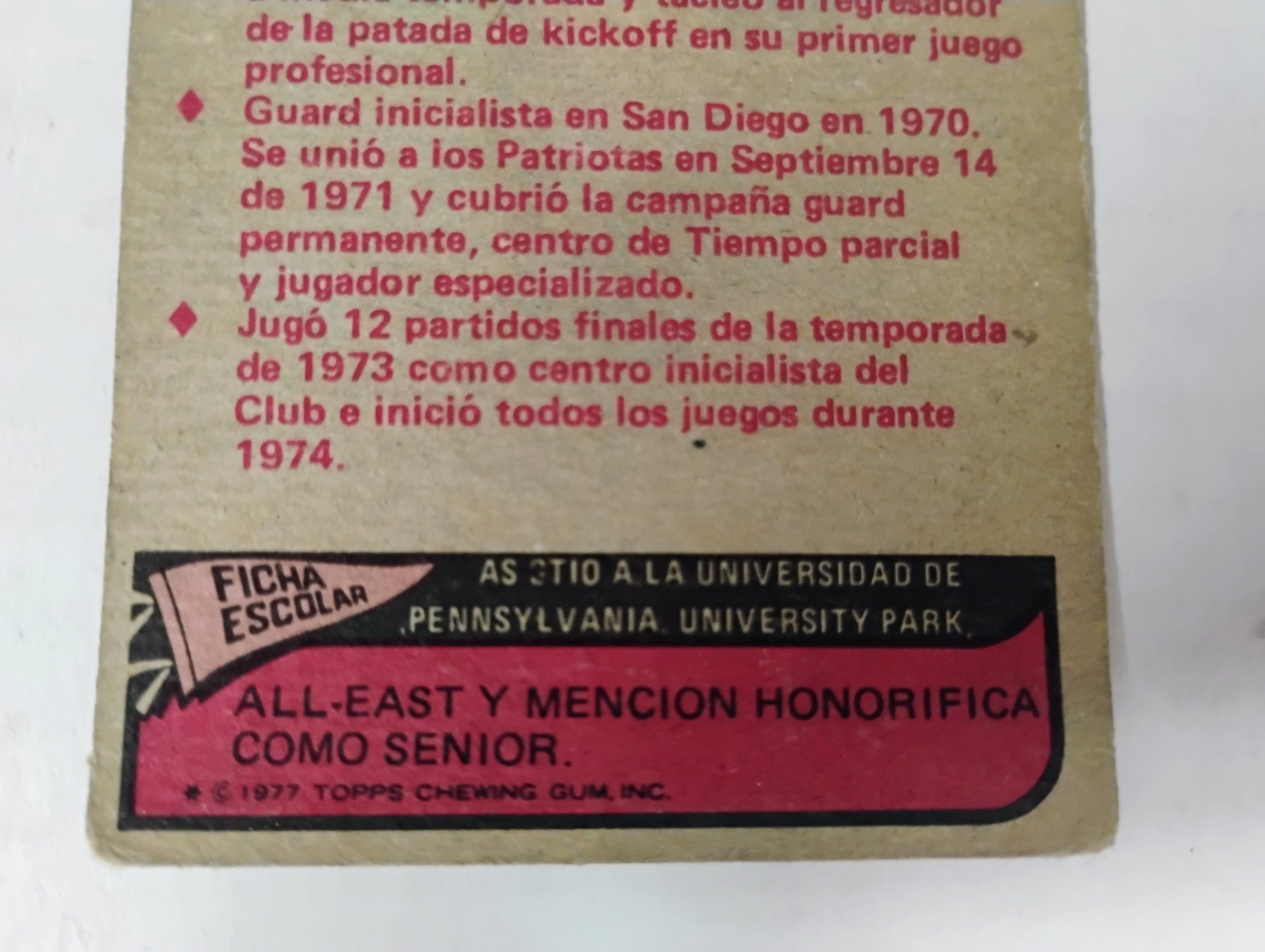 1977 Topps Mexican NFL #38 Bill Lenkaitis Good Soft Corners Good Centering Fading Creas Upper Left Corner Set Is Scarce