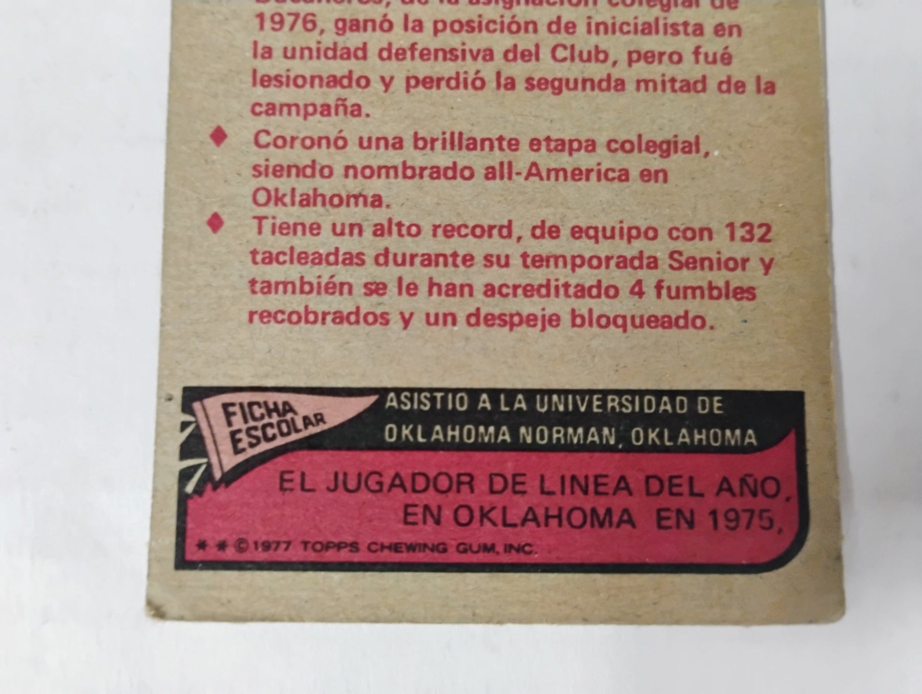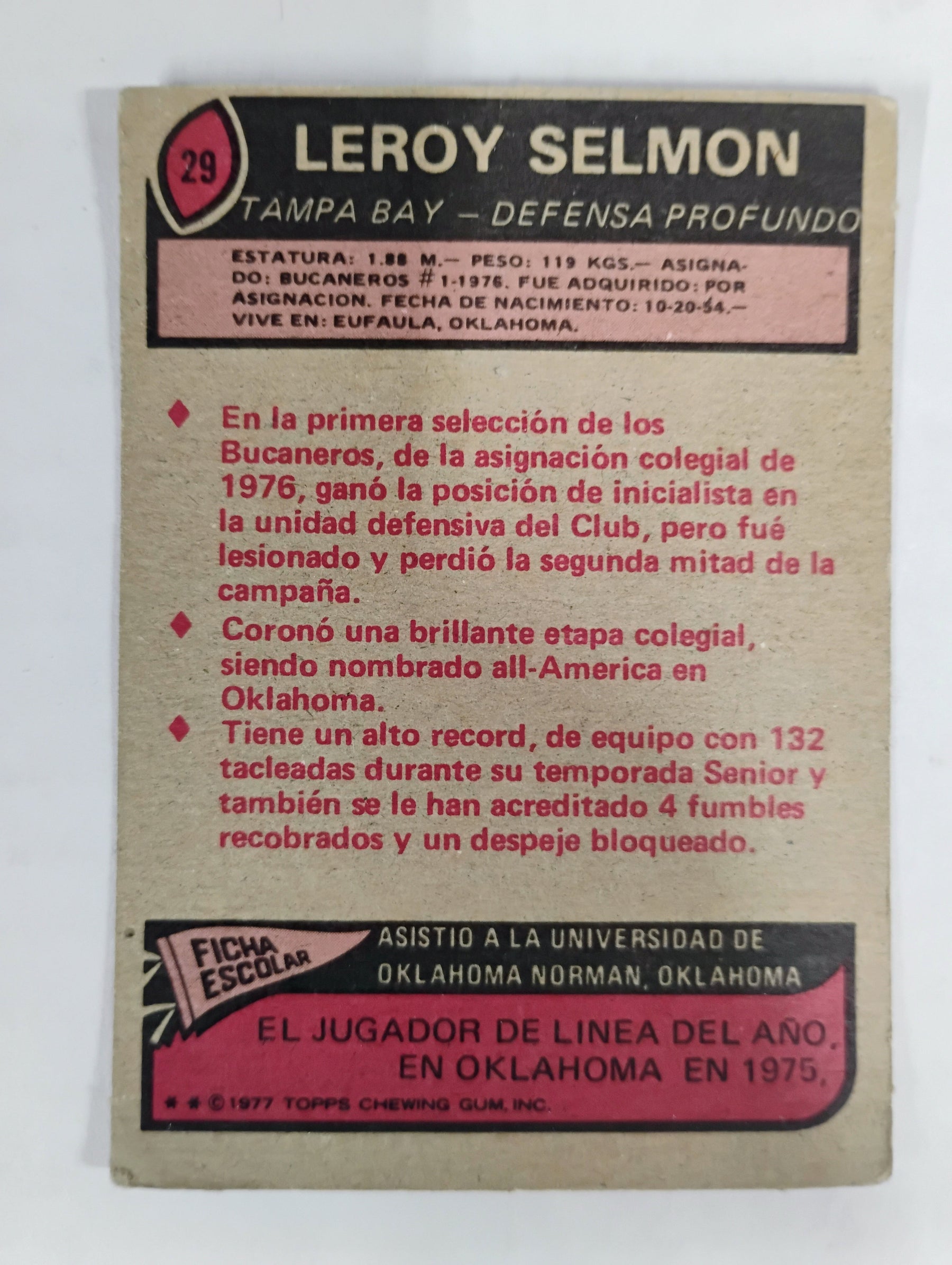 1977 Topps Mexican NFL #29 Leroy Selmon RC Good Soft Corners Good Centering Good Color No Creasing Set Is Scarce