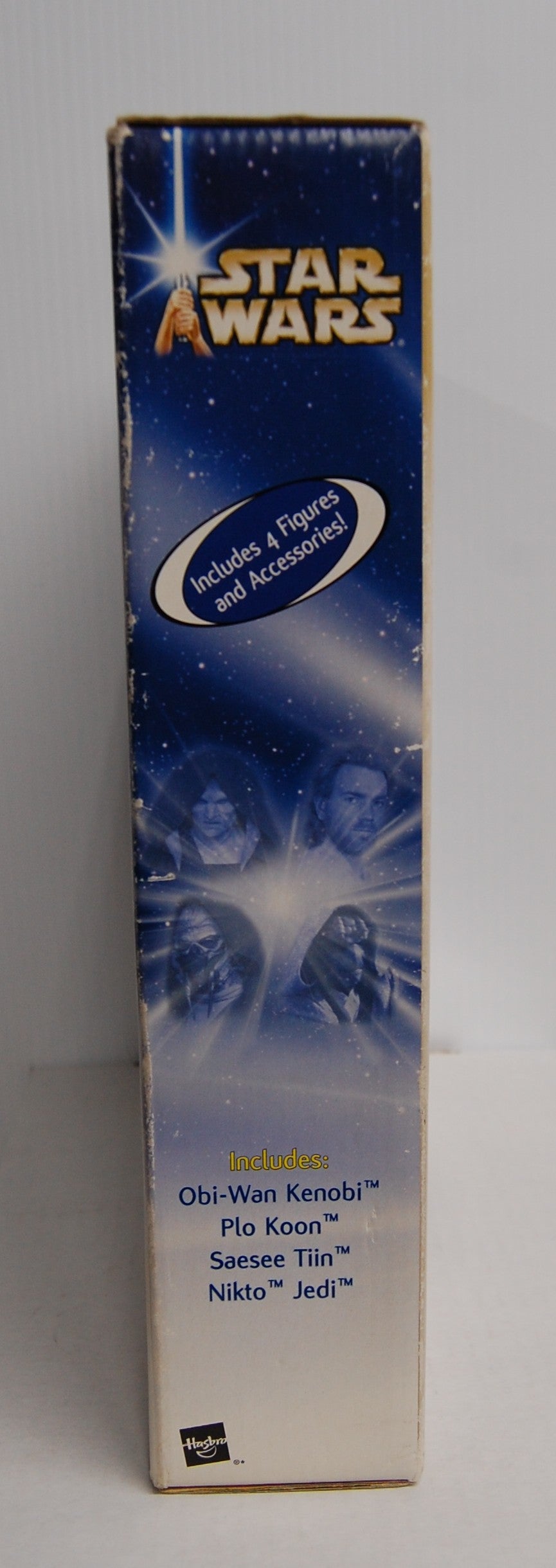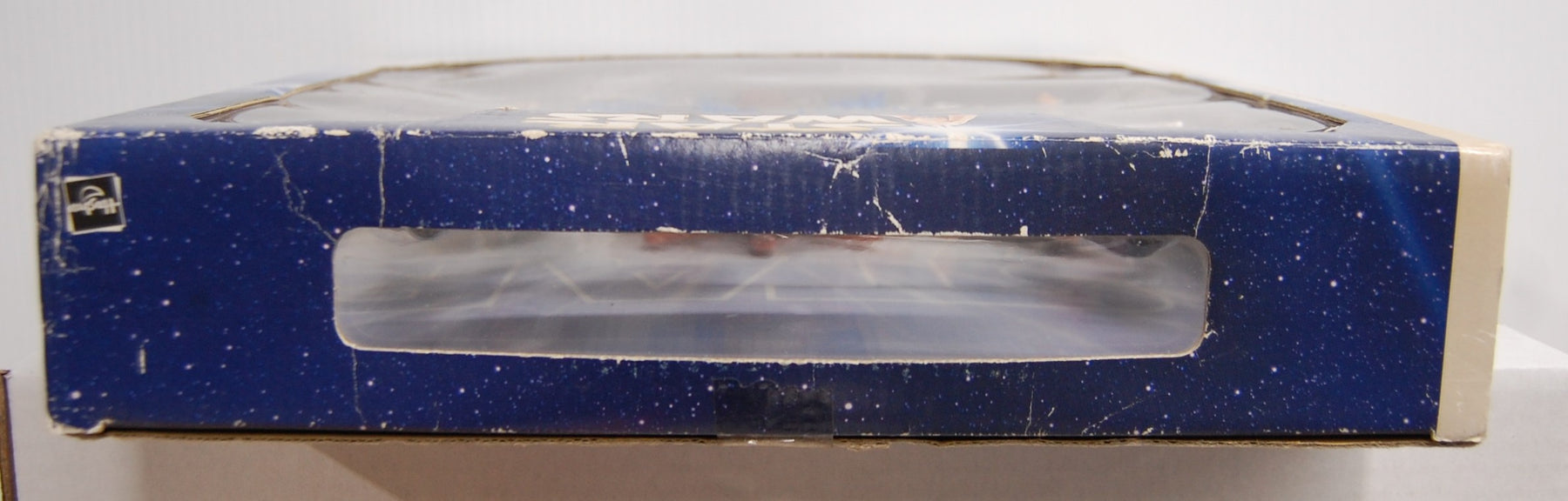 Box has significant visual wear, corner and edge wear, blunting, tearing to tape seal, however, is still sealed. Figures look great.