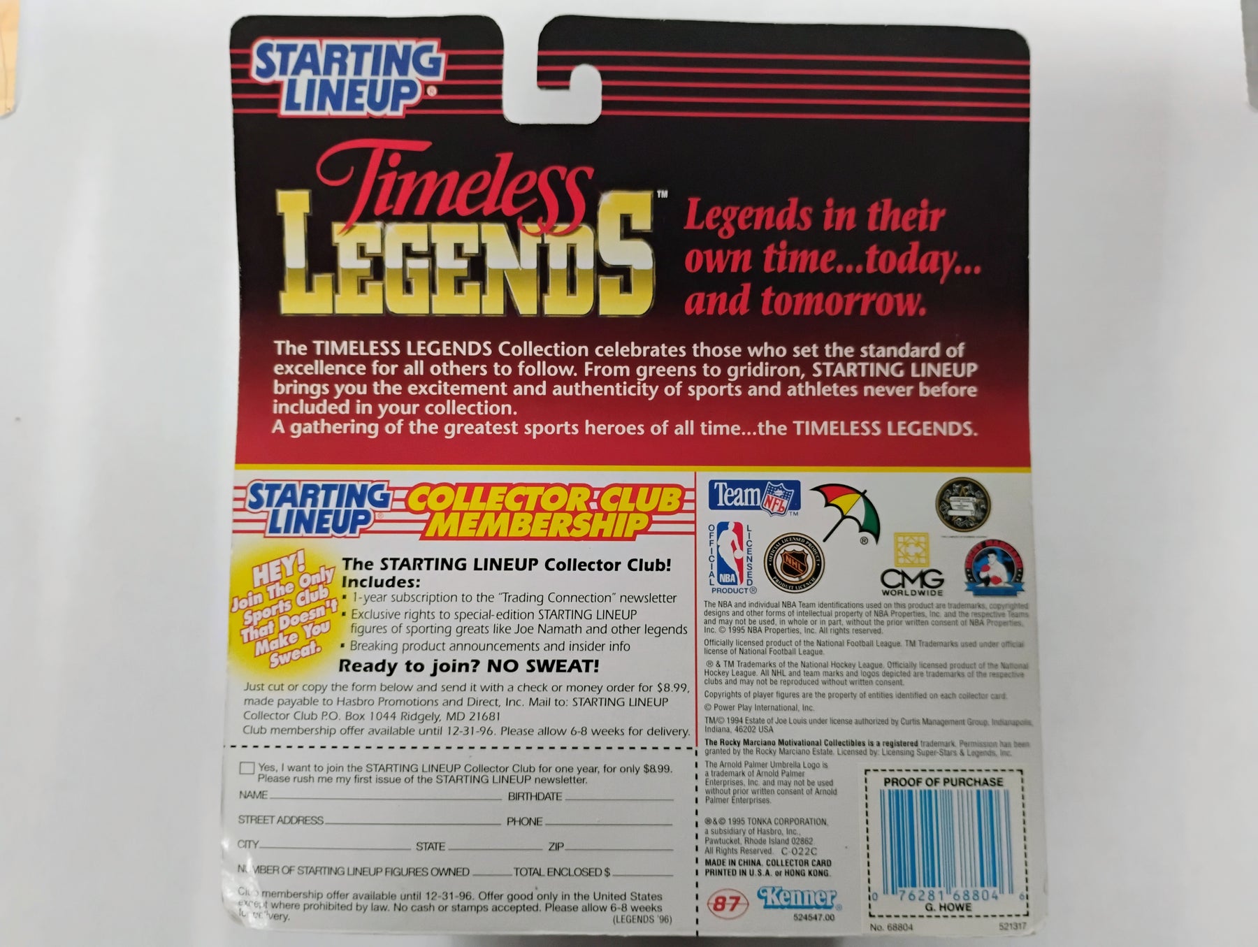 1995 Kenner Starting Lineup Timeless Legends Gordie Howe Sealed