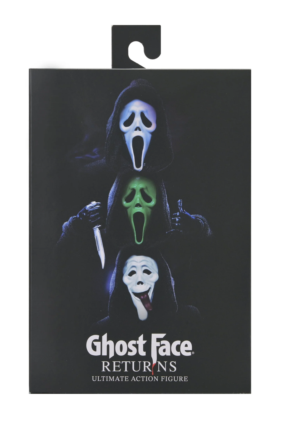 Ghost Face is back—and better than ever! NECA reimagines its original Ultimate Ghost Face with a fresh update featuring new looks, more weapons, and updated articulation. Based on the iconic Fun World® costume and masks, this figure brings the legendary slasher into a new era. With multiple new mask designs and interchangeable parts, you can customize your killer and build out a truly unique Ghost Face display. This action figure is also designed to mix and match seamlessly with the Ultimate Ghost Face Inferno figure (sold separately). Standing in 7-inch scale, Ghost Face features an updated soft goods robe (first seen in the Ghost Face Takes Manhattan Con Exclusive) and five interchangeable faceplate masks: classic, bloody, green, “Whassup?”, and an all-new bling mask. Other accessories include a chrome knife, rusted knife, bone saw, axe, new voice changer, interchangeable heads, and interchangeable hands—including the iconic “knife wipe” hand and “call me” hands. Comes in collector-friendly window box packaging with opening front flap.