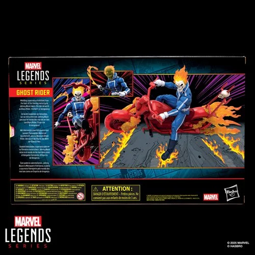 Bring the excitement and wonder of the Marvel Universe to your collection with Hasbro Marvel Legends Ghost Rider figure! This collectible 6-inch scale Marvel action figure is detailed to look like the character Johnny Blaze from Marvel's Ghost Rider comics. Ghost Rider action figure is fully articulated with premium design and poseable head, arms, and legs. This action figure set comes with 7 pieces: alternate flaming skull, 3 alternate hands, chain, and Ghost Rider’s iconic fiery-red motorcycle with flame detail. Hasbro Marvel action figures' 6 inch scale make them great for posing and displaying in fans' collections. Pose Ghost Rider tearing down the highway on his motorcycle or exacting fiery vengeance and reimagine Ghost Rider comics-inspired scenes on your shelf with Marvel Legends action figures and Marvel collectibles. Ages 4 and up.