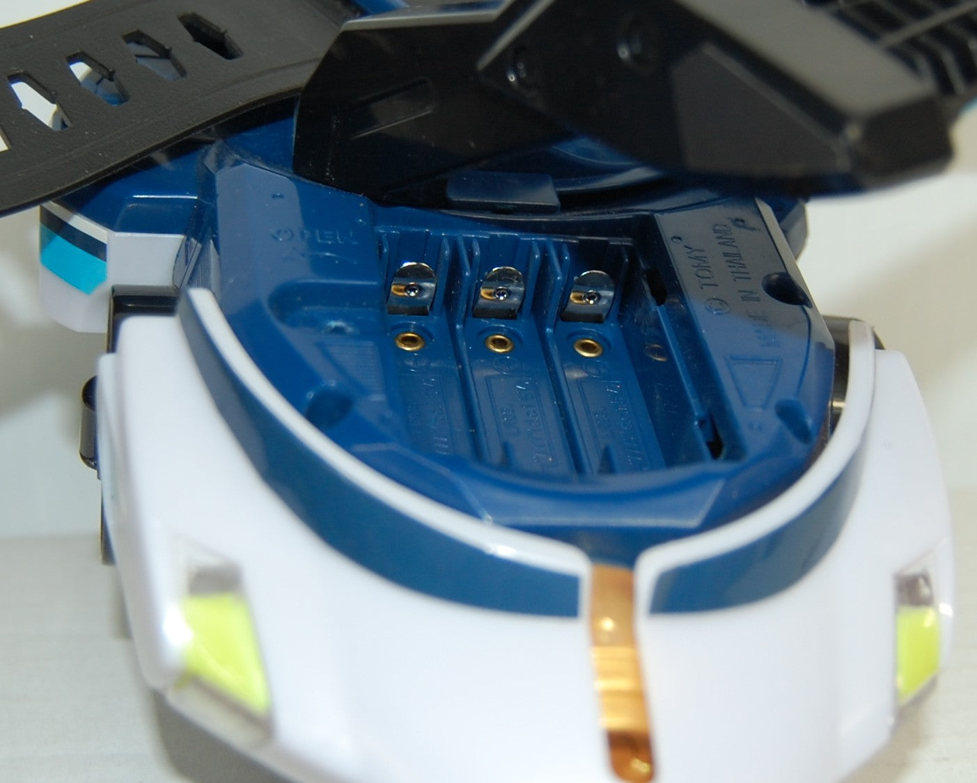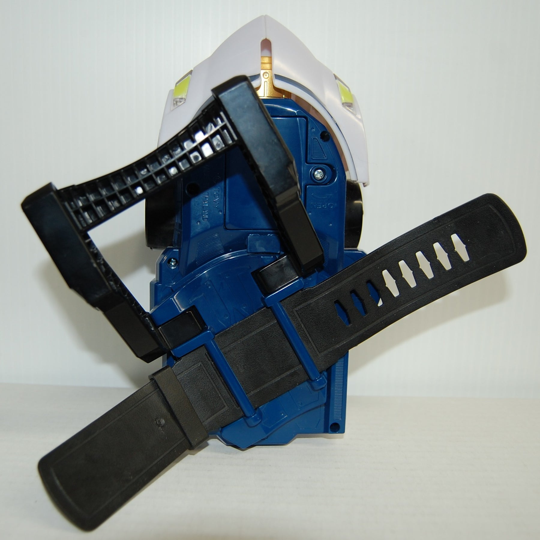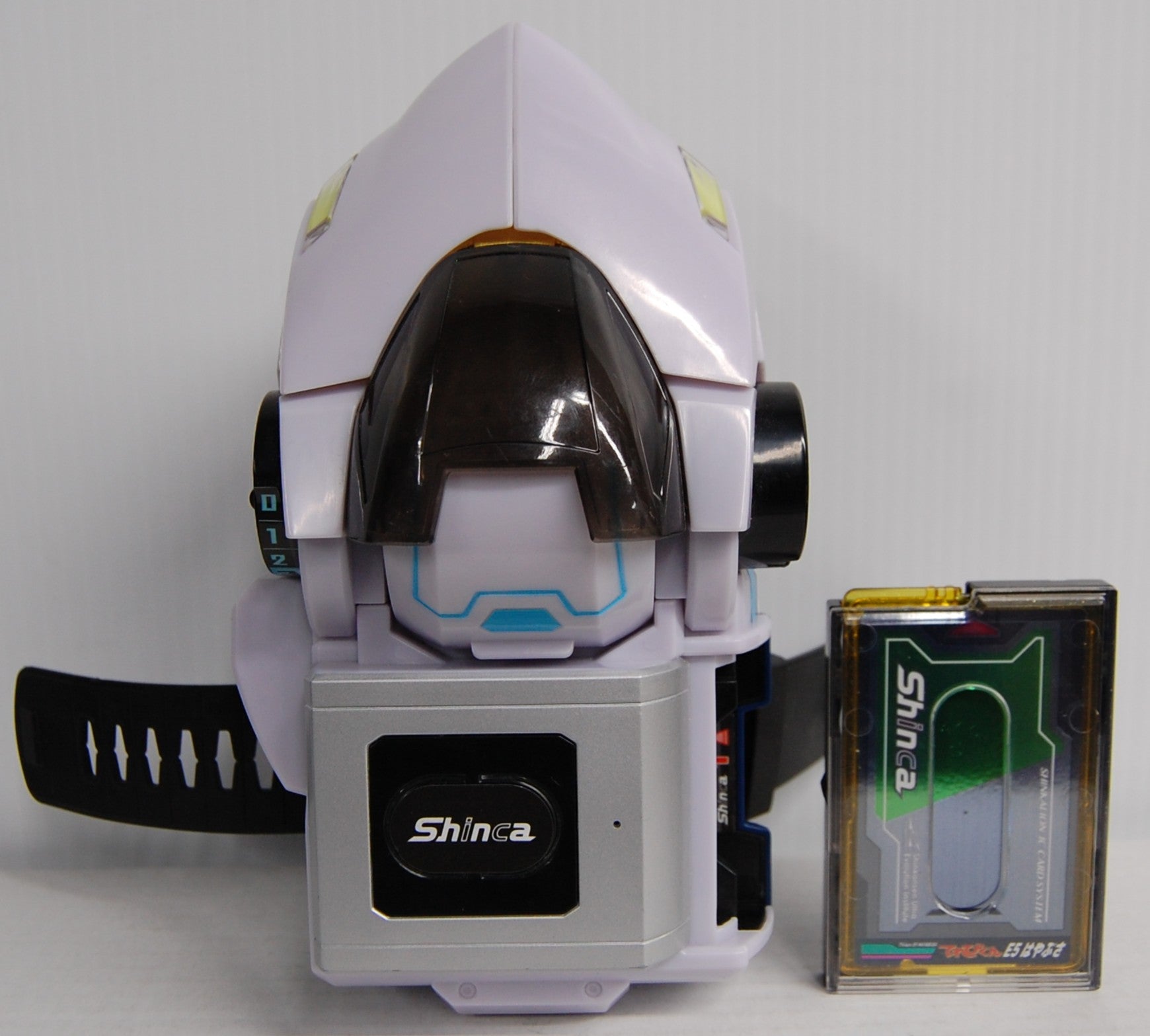 Used. Tested and working sound and lights, as well as window cover and front tip pieces that expand when cassette is inserted. Comes with one card cassette. Clean battery compartment. Band approximately 10 inches, approximately 8 inch length, 4 1/2 inch width, 6 inch height.